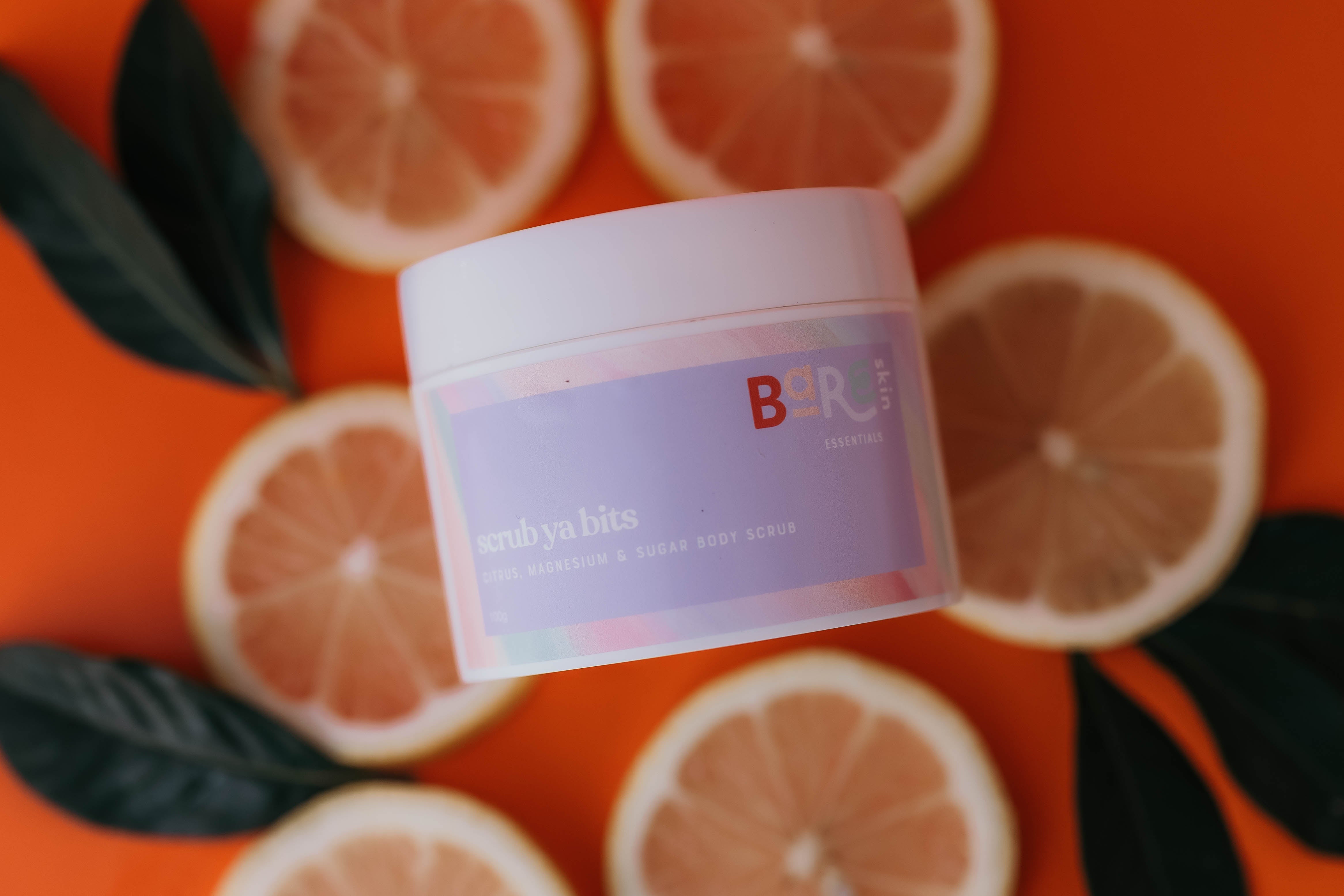 Scrub ya bits The Citrus magnesium and sugar scrub is so fresh and uplifting, the texture is perfect-Exfoliating without being harsh. My skin feels incredibly smooth soft and refreshed after every use using this is an instant mood booster. Jazmin B
